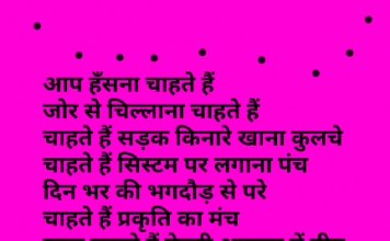 क्य बताऊँ किसलिए बेजार हूँ क्या बताऊँ किसलिए बेजार हूँ रोज के हालात से लाचार हूँ तरबतर हैं चप्पलें बरखा बगैर दुर्गंध से भरा हुआ बाजार हूँ मकानों में...